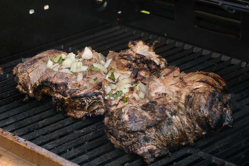 On medium heat / 4 to 5 inches from the heat barbecue for approximately 15 minutes each side. Alternatively cook in the centre of an oven at 180°C, Gas Mark 4 for the same amount of time. Adjust time for pink or well-done meat.