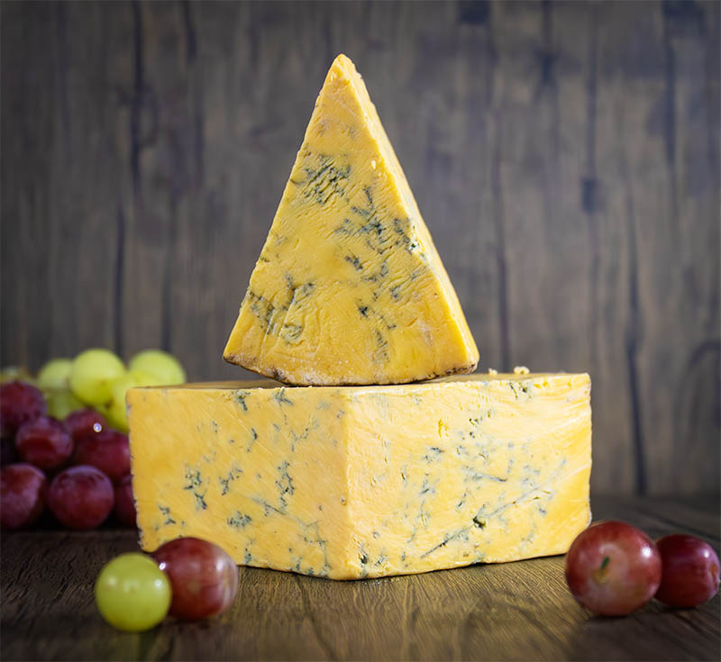 Let the bold beauty of Clawson Shropshire Blue shine on your cheeseboard.